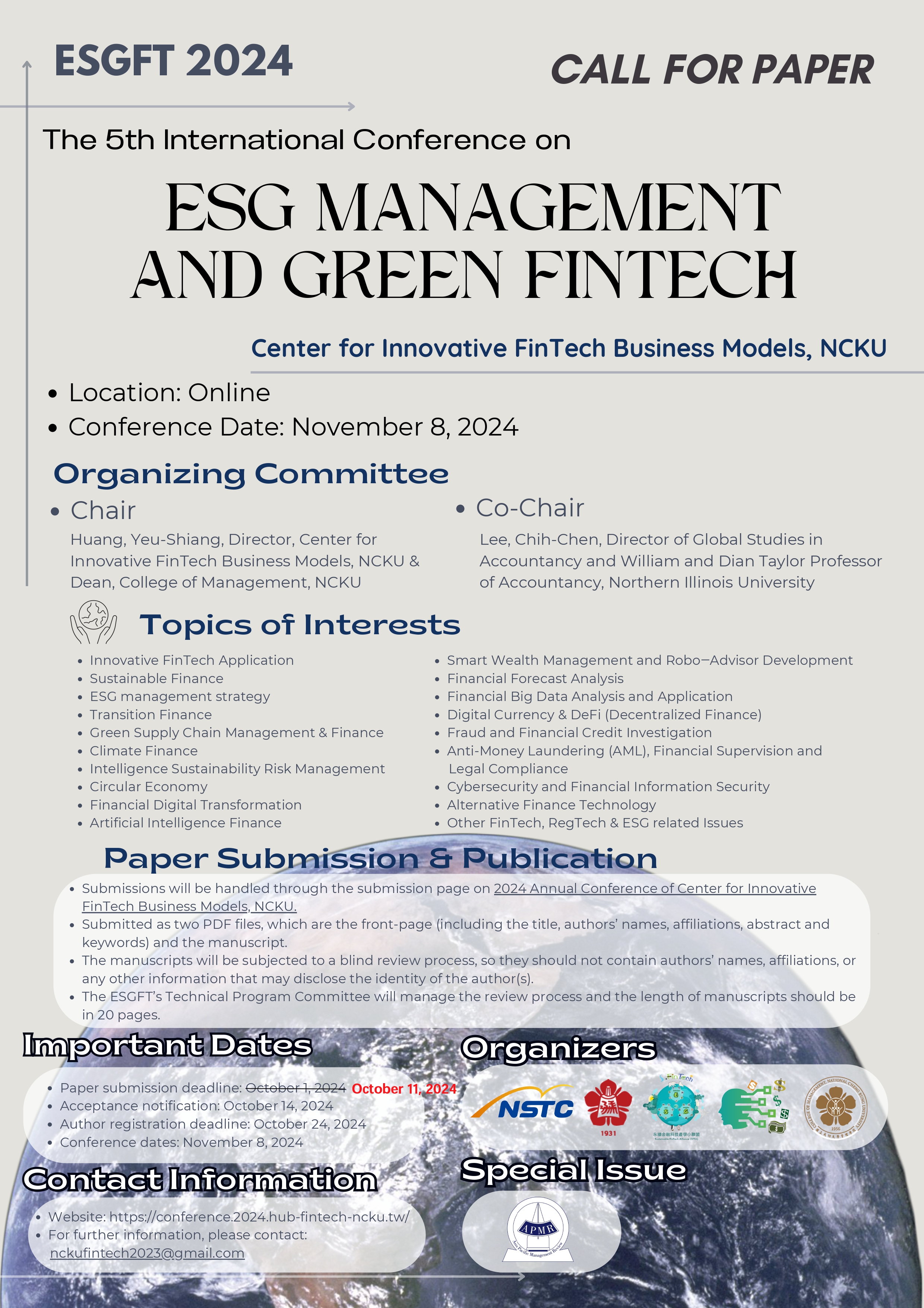 Green FinTech is an emerging and integrated application of financial innovation and sustainability initiatives, with core FinTech technologies including Artificial Intelligence, Blockchain, Big Data Analytics, Cloud Computing, Data Mining, Machine Learning and Mobile Payments (ABCDM technologies). These core technologies have been widely applied in various financial services to provide customers with an innovative and high-quality experience of future financial services. Sustainable development initiatives emphasize environmental friendliness, social responsibility and corporate governance obligations in addition to the pursuit of profits. Green finance and circular economy have become the new significant economic phenomenon. As financial frameworks or ESG financial investment products are introduced gradually by corporations, many research institutes are emphasizing on exploring the correlation between economic activities and environmental performance. Therefore, we believe that it is a good time to address the issues in ESG management and Green FinTech.